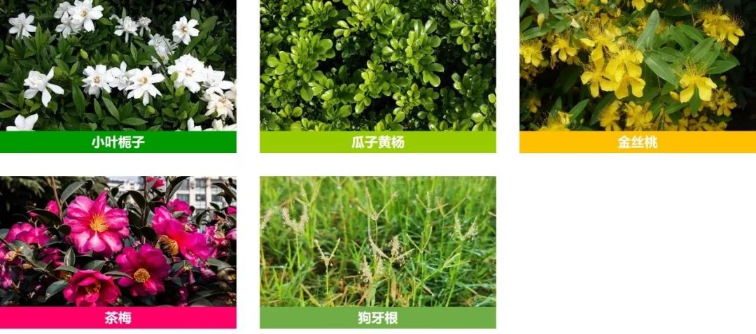 4)此外選擇花卉地被植物時,選用以觀賞效果較好的春鵑、小葉梔子、金絲桃、茶梅等。