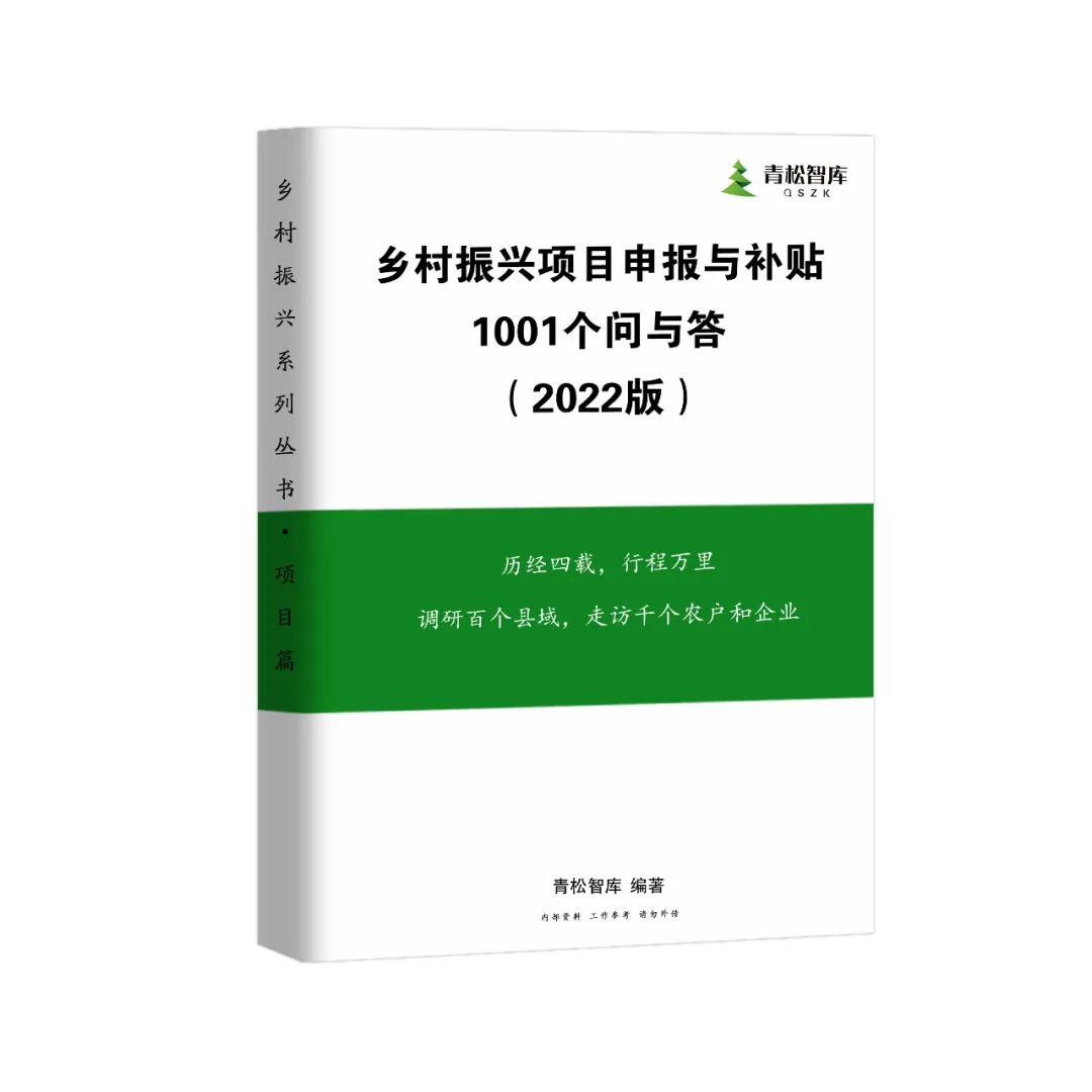歷經(jīng)四載,行程萬(wàn)里,調(diào)研百個(gè)縣域,走訪千家農(nóng)戶(或企業(yè)),凝聚匠心,由青松智庫(kù)編制的《鄉(xiāng)村振興項(xiàng)目申報(bào)與補(bǔ)貼1001個(gè)問與答》內(nèi)部資料,數(shù)量有限,是常用工作參考工具書,有需要的請(qǐng)加緊與青松智庫(kù)聯(lián)系。
