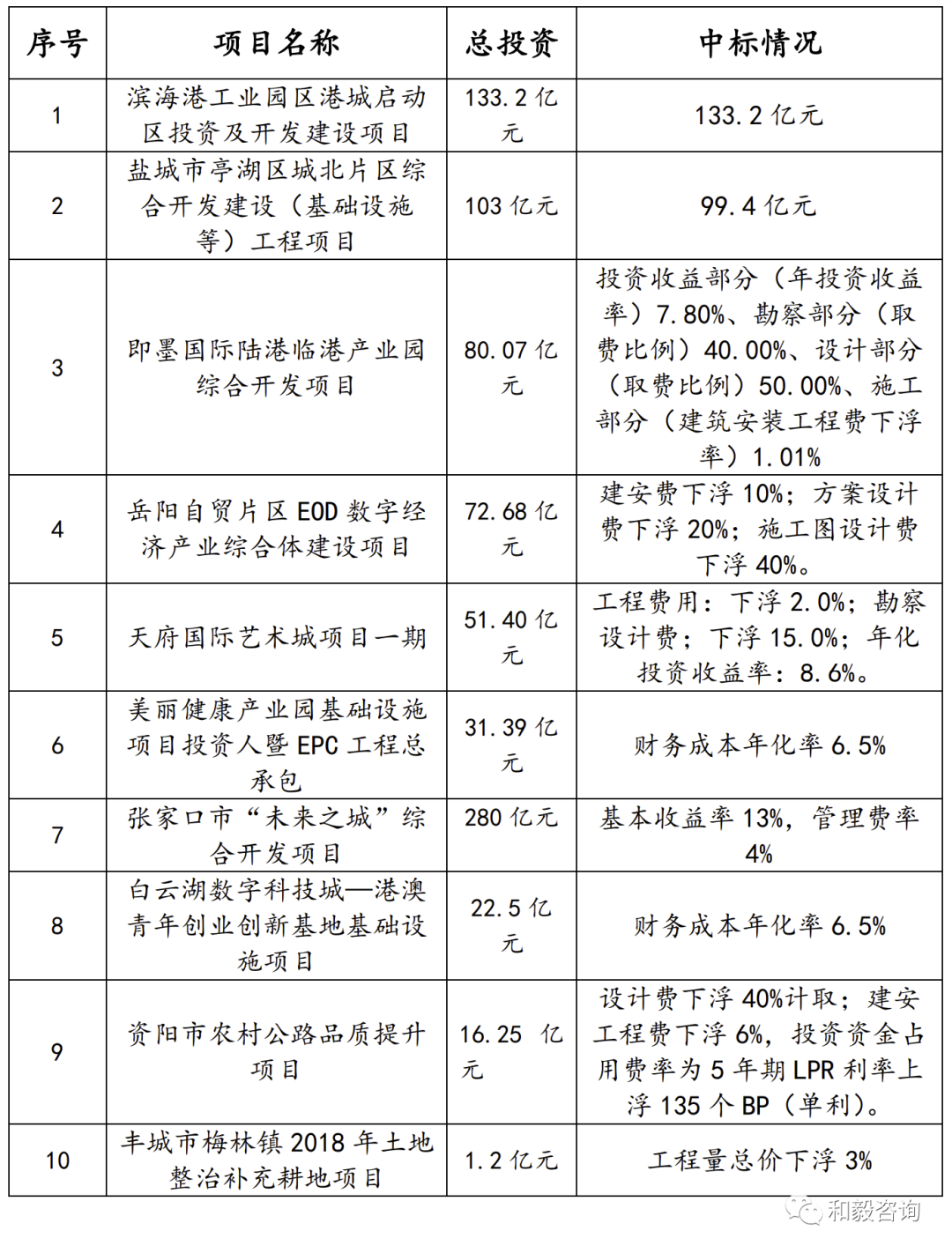 表3 國內“投資人+EPC”典型項目中標情況表