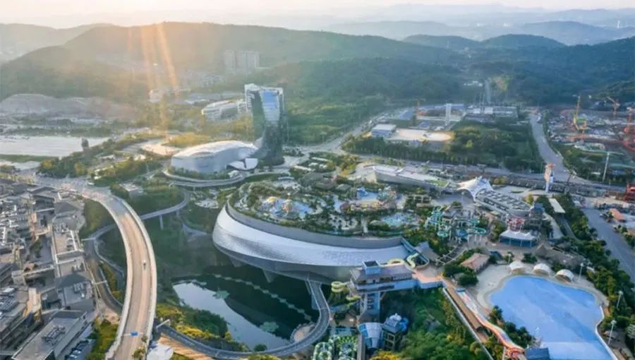 長沙市坪塘鎮礦坑生態修復利用工程,將廢棄礦坑這一工業遺址轉化為活力四射的體驗式“兩型”主題樂園。項目包含歡樂雪域及歡樂水寨兩大樂園,總建筑面積約11萬平方米,以歷經50年開采而形成的百米深廢礦坑為依托,采用地景式設計手法,將建筑隱藏于地平線以下與礦坑融為一體,建造過程攻克了喀斯特地質環境重載、大跨建筑的建造難題,研發了裸露巖壁綠色生態修復技術,完美修復遺留廢棄礦坑這個巨大疤痕,帶動周邊產業的蓬勃發展。