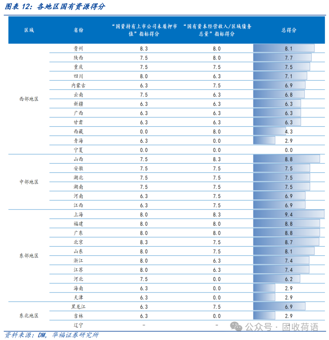 (2)中部地區(qū)的化債資源整體較一般,可結合自身優(yōu)勢充分利用各類資源緩解債務風險。例如,安徽可以利用其豐富的上市國企資源進行化債。