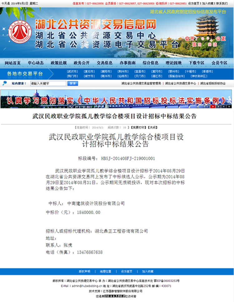 武漢民政職業學院孤兒教學綜合樓項目設計招標