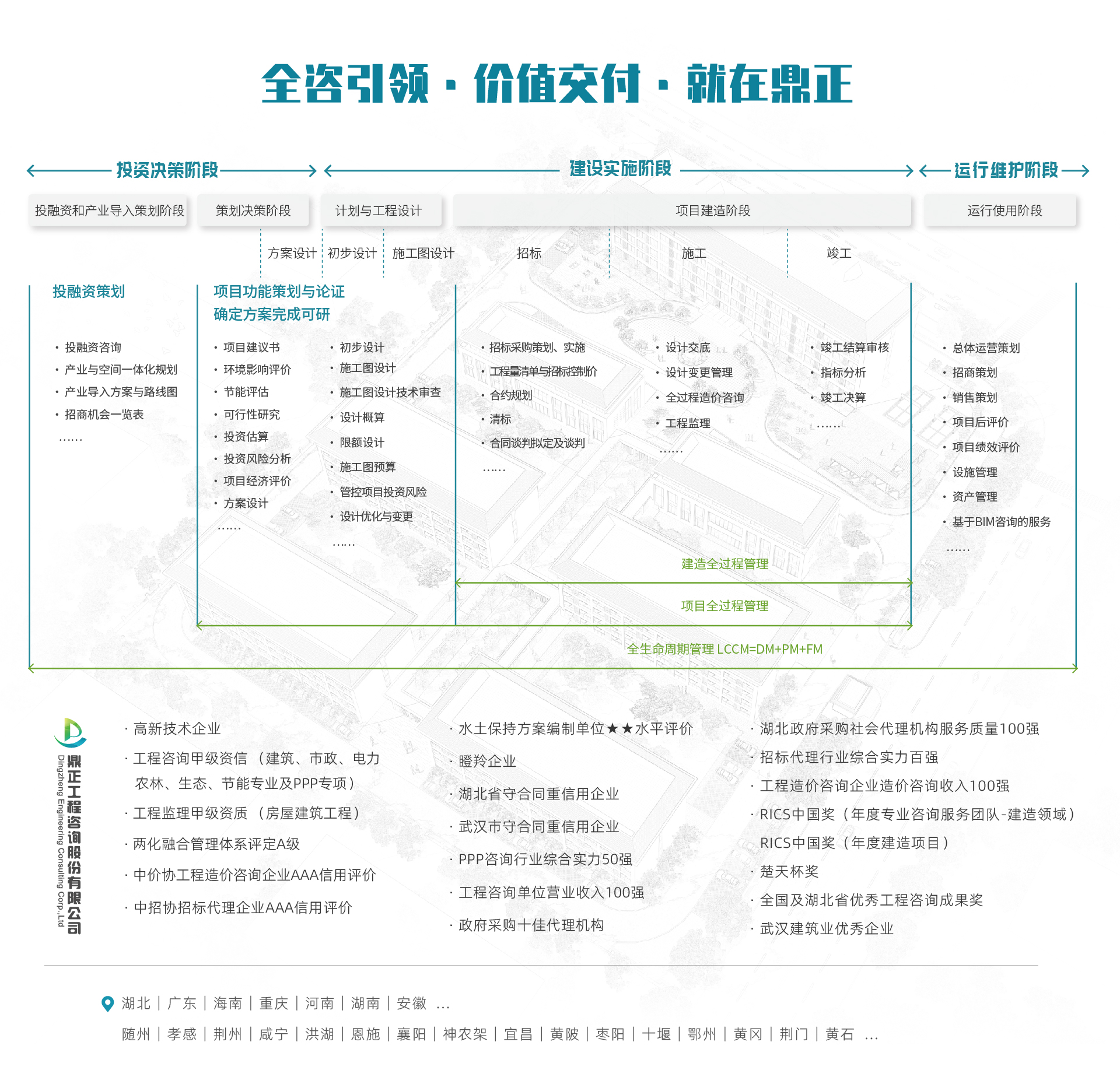 業(yè)績(jī)涉及各類(lèi)公建、工業(yè)、能源、環(huán)保、交通、市政、城市軌道、國(guó)土整治等行業(yè),包括海內(nèi)外各類(lèi)建設(shè)項(xiàng)目的工程咨詢、工程招標(biāo)代理、工程造價(jià)咨詢、項(xiàng)目管理等咨詢業(yè)務(wù)...