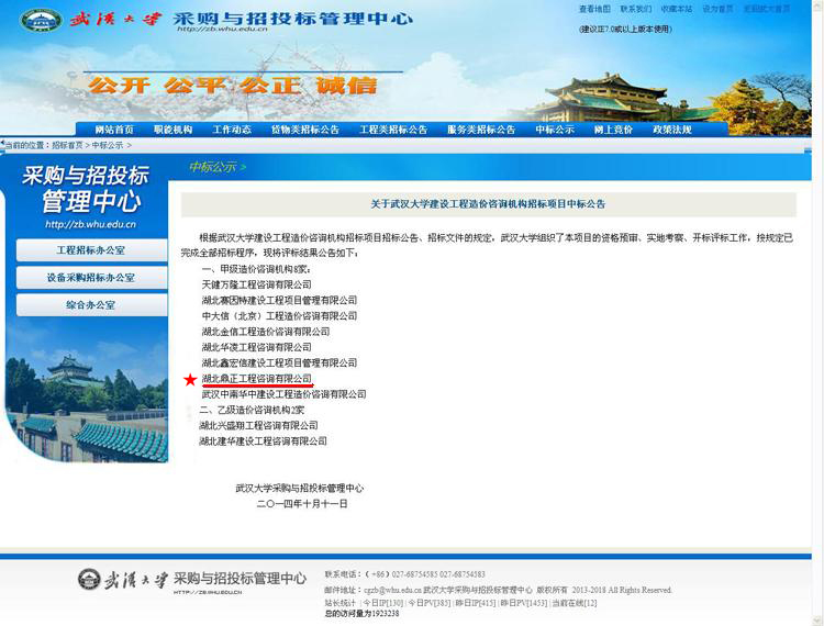 我公司入圍武漢大學(xué)建設(shè)工程造價(jià)咨詢機(jī)構(gòu)信息庫,此次遴選面向全國工程造價(jià)咨詢企業(yè)進(jìn)行招標(biāo),共入圍10家企業(yè),主要為武漢大學(xué)提供建設(shè)工程項(xiàng)目工程量清單與招標(biāo)控制價(jià)編制與審核、全過程造價(jià)控制、竣工結(jié)算審核等相關(guān)服務(wù)。