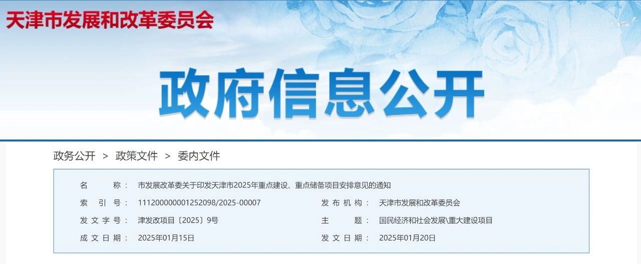 天津市發(fā)展改革委發(fā)布2025年重點建設(shè)、重點儲備項目安排意見,共計1129個項目、總投資2.02萬億元。其中,包括重點建設(shè)項目854個,總投資1.52萬億元,年度計劃投資2209.07億元,均為在建續(xù)建或即將開工項目;重點儲備項目275個,總投資4992.26億元。