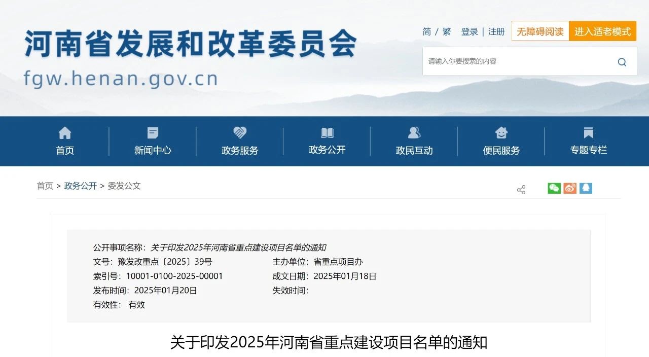 河南省發(fā)展改革委印發(fā)2025年河南省重點建設(shè)項目名單,明確2025年省重點項目1037個、總投資約3.1萬億元,力爭年度完成投資1萬億元左右。項目涵蓋創(chuàng)新驅(qū)動能力提升、基礎(chǔ)設(shè)施建設(shè)、新型基礎(chǔ)設(shè)施建設(shè)、產(chǎn)業(yè)轉(zhuǎn)型發(fā)展、綠色低碳轉(zhuǎn)型、民生社會事業(yè)改善等六大領(lǐng)域。