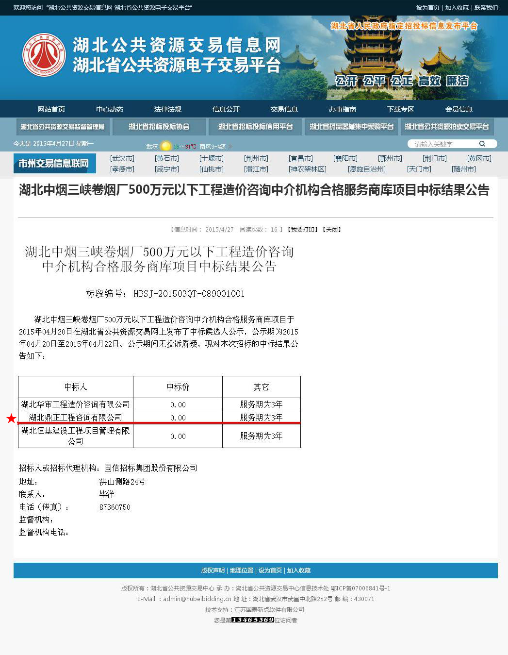 【經(jīng)營成果】我司入選湖北中煙三峽卷煙廠500萬元以下工程造價咨詢中介機構(gòu)合格服務(wù)商庫
