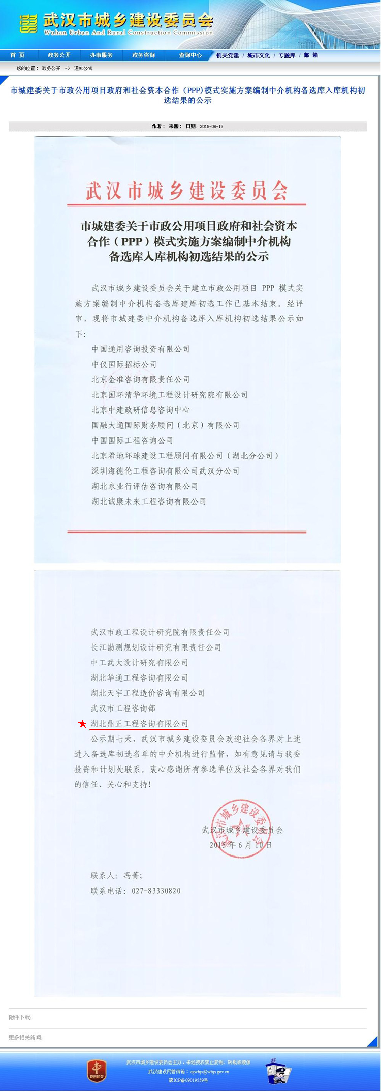 【經(jīng)營(yíng)成果】我司入圍市城建委關(guān)于市政公用項(xiàng)目政府和社會(huì)資本合作(PPP)模式實(shí)施方案編制中介機(jī)構(gòu)備選庫(kù)
