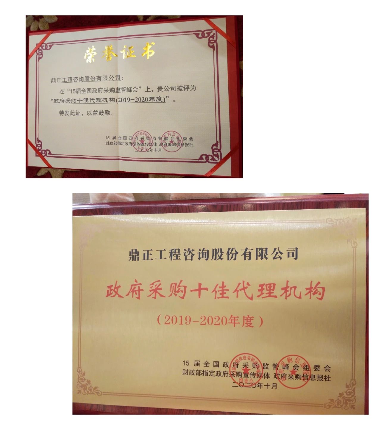 鼎正印記 | 熱烈慶祝我司榮獲全國(guó)政府采購(gòu)十佳代理機(jī)構(gòu)