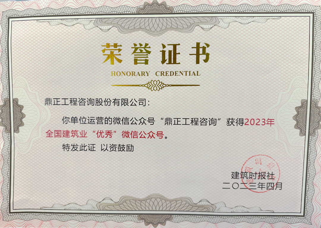 4月20日,由建筑時(shí)報(bào)主辦的2023年建筑業(yè)微信公眾號(hào)運(yùn)維經(jīng)驗(yàn)交流研討會(huì)暨全國(guó)建筑業(yè)優(yōu)秀公眾號(hào)頒獎(jiǎng)典禮在廣西南寧舉辦。鼎正官方微信公眾號(hào)“鼎正工程咨詢”再度榮獲“全國(guó)建筑業(yè)優(yōu)秀微信公眾號(hào)”榮譽(yù)稱號(hào)。