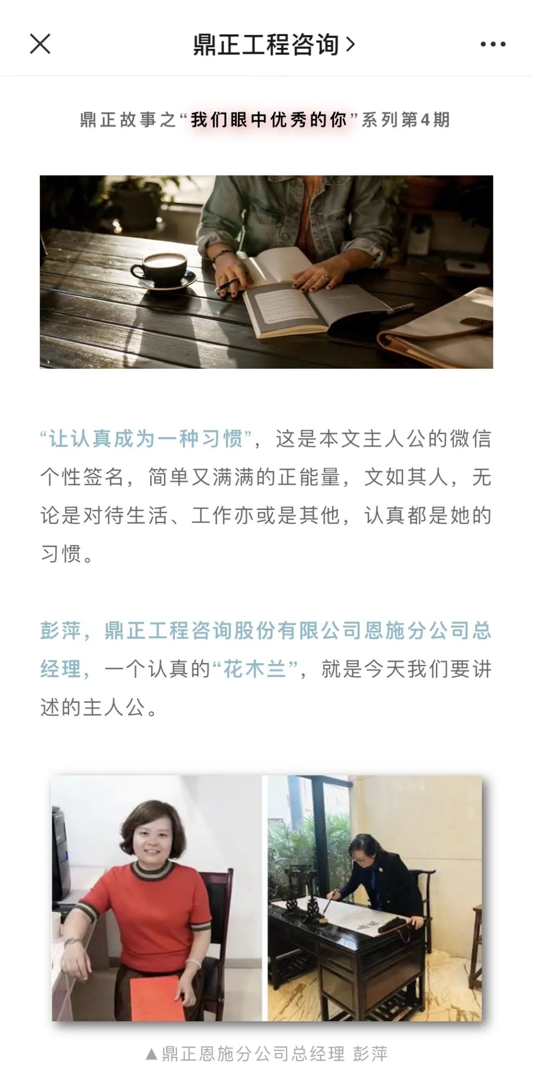 “鼎正工程咨詢”微信公眾號(hào),既是公司品牌傳播的窗口,也是同事們互動(dòng)交流的平臺(tái)。從2020年起,微信公眾號(hào)便相繼推出了“我們眼中優(yōu)秀的你”、“鼎正故事”、“榜樣人物”、“鼎正人物”等人文宣傳板塊,通過深度挖掘工程師的成長(zhǎng)故事,全方位展示鼎正人的企業(yè)文化,為讀者奉上一道道關(guān)于奮斗的精神大餐。